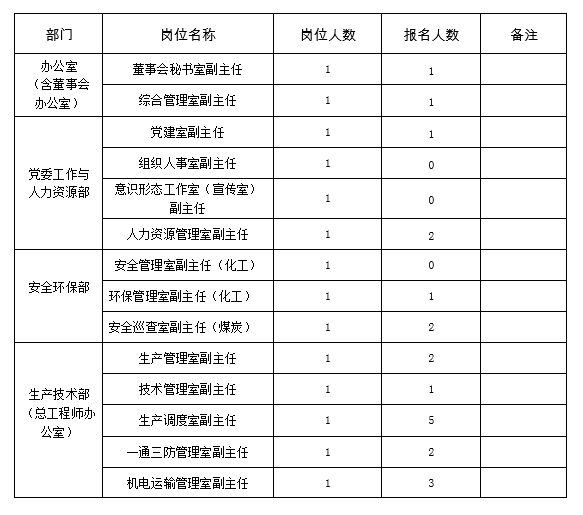 凭据《云南省煤炭工业集团有限公司总部各部室内设机构室主任、室副主任竞争上岗通告》要求,现对加入集团总部各部室内设机构室主任、副主任竞争上岗报名情况进行通报。