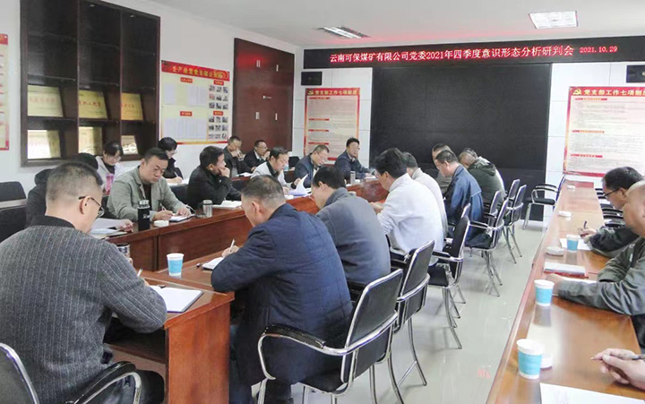 为切实推动意识形态事情责任制落实落地,近日,云南可保煤矿有限公司党委召开2021年四季度意识形态事情研判会,公司领导班子成员、各党总支、支部书记、各部室卖力人共29人加入集会,集会由矿党委副书记、董事长、总经理陈安勇主持。