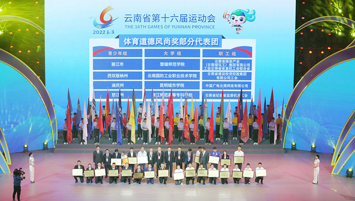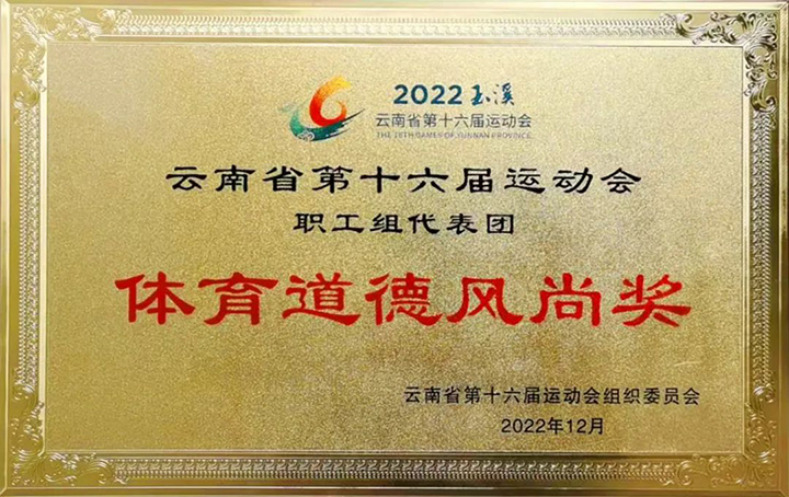 3月17日晚,云南省第十六届运动会在玉溪高原体育运动中心主体育馆落下帷幕,省委副书记、省长王予波,省人大常委会副主任任军号,副省长杨洋,省政协副主席李玛琳,省政府秘书长孙灿出席落幕式。受集团党委副书记、工会主席王鑫委托,集团工会女工委副主任印虹代表集团加入落幕式,集团代表团荣获“体育品德民俗奖”,并在落幕式上接受现场表扬。