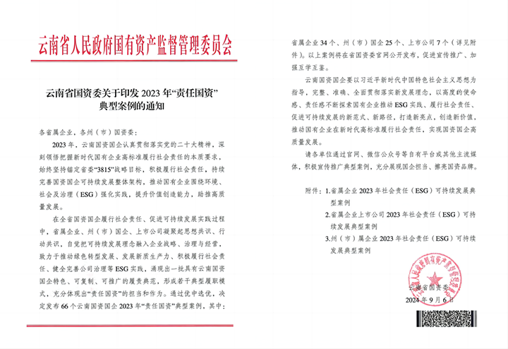近日,云南省国资委印发《2023年“责任国资”典范案例的通知》,选录了2023年度省属企业履行社会责任的34个优秀案例。云煤集团的《扛起保供责任,勇于继续作为》《党建引领强化党小组、班组建设“四字经”释放宁静治理“大能量”》案例乐成入选社会类、治理类可连续生长典范案例,充分展现了集团在社会责任治理以及履行国企社会责任实践等方面的示范引领作用。